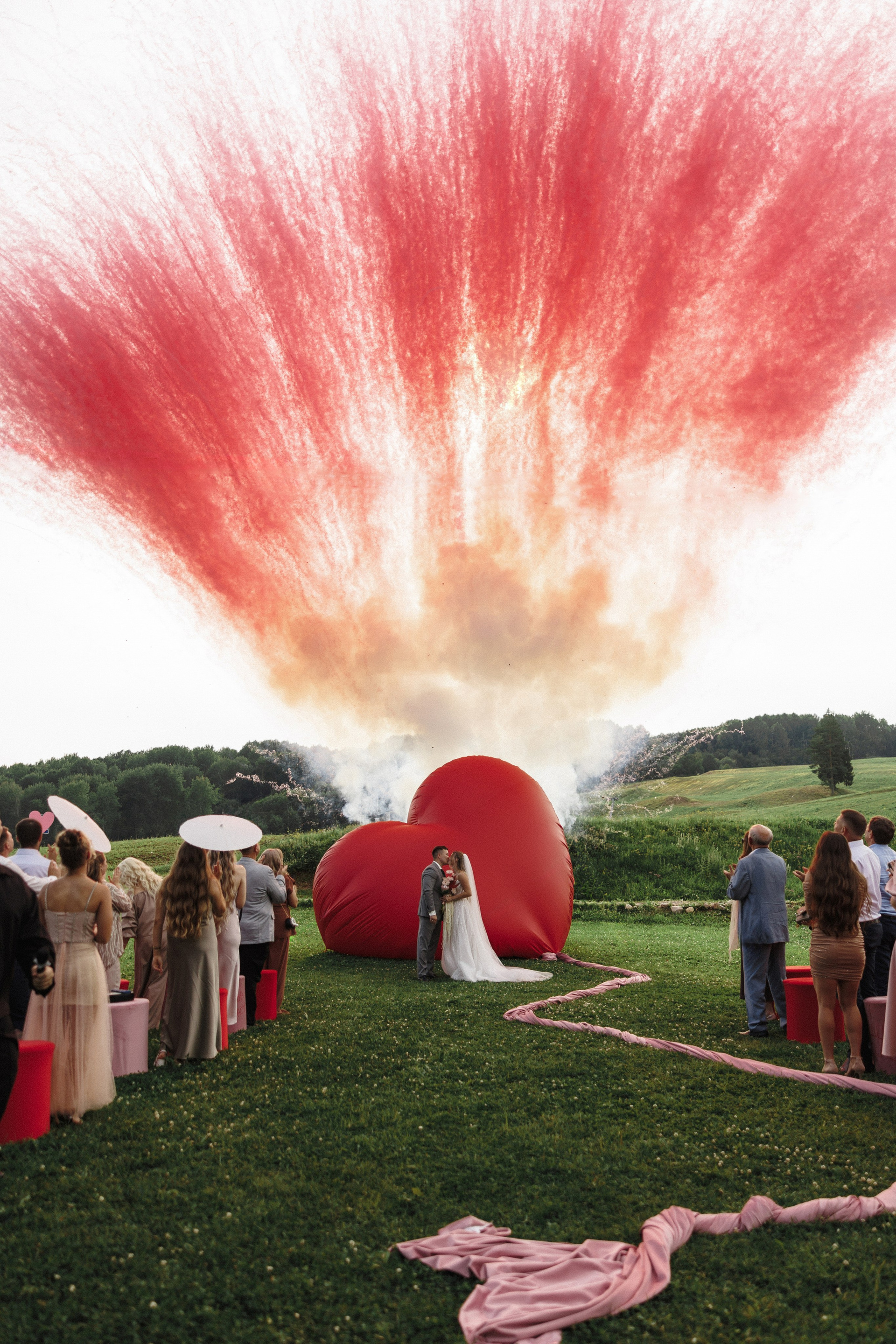 «Сердце подсказало» — так жених описал свои чувства, почему именно Она. И именно огромное воздушное сердце стало концепцией и главным символом этой чувственной свадьбы.
